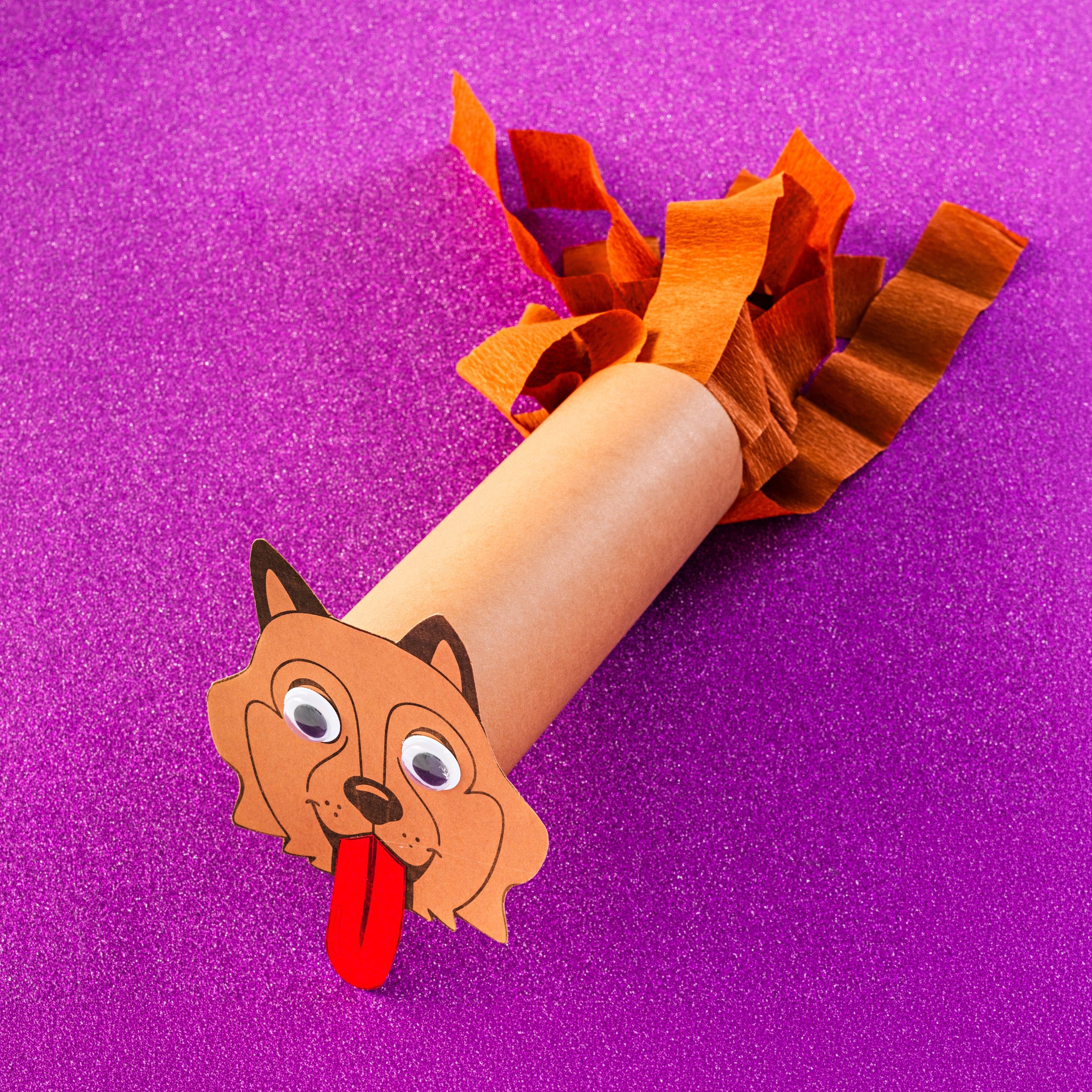 - Decupează forma capului de lup și lipește-o la capătul tubului de carton.