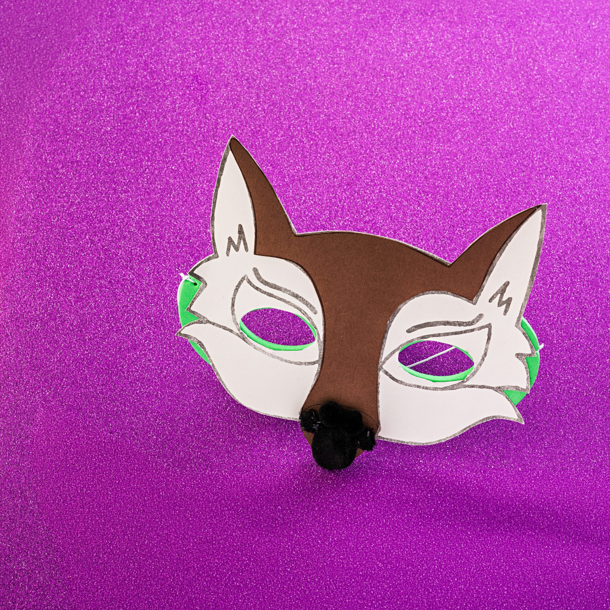 - Decupează șablonul de pe cartonul maro și lipește-l peste mască.