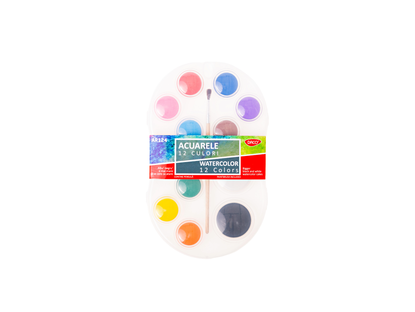Acuarele 12 culori Albu’ Negru’ AR124 DACO