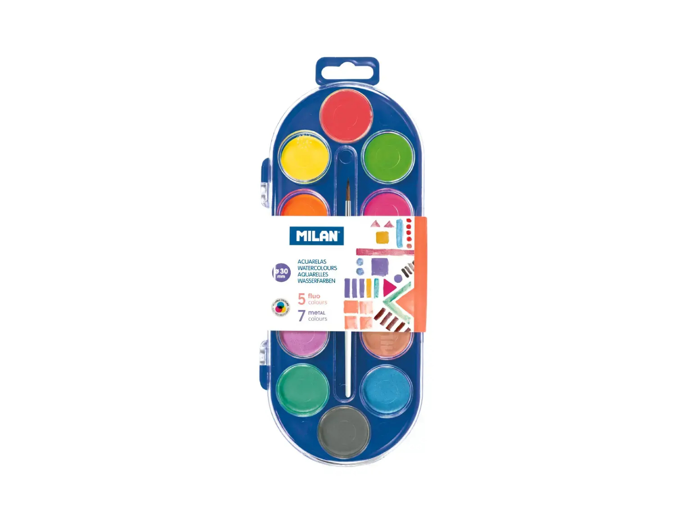 Set Acuarele MILAN – 7 Culori Metalice + 5 Fluorescente, Pensulă Inclusă