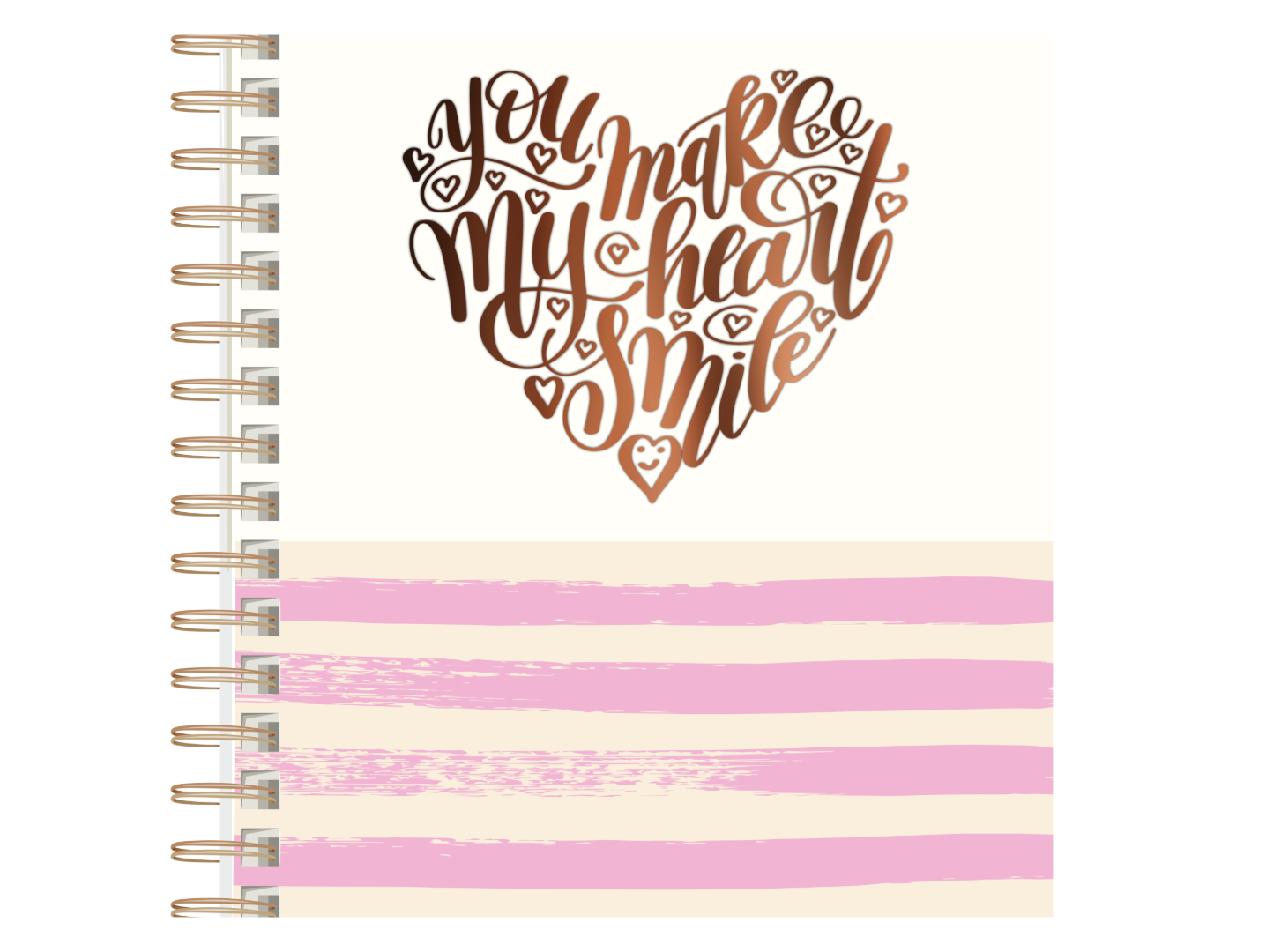 Coperta este realizată din carton rezistent, iar spirala metalică aurie permite deschiderea ușoară și utilizarea confortabilă a agendei. Conține 80 de file din hârtie ivory, plăcută la scriere, cu colțuri rotunjite pentru un aspect îngrijit și o utilizare practică.