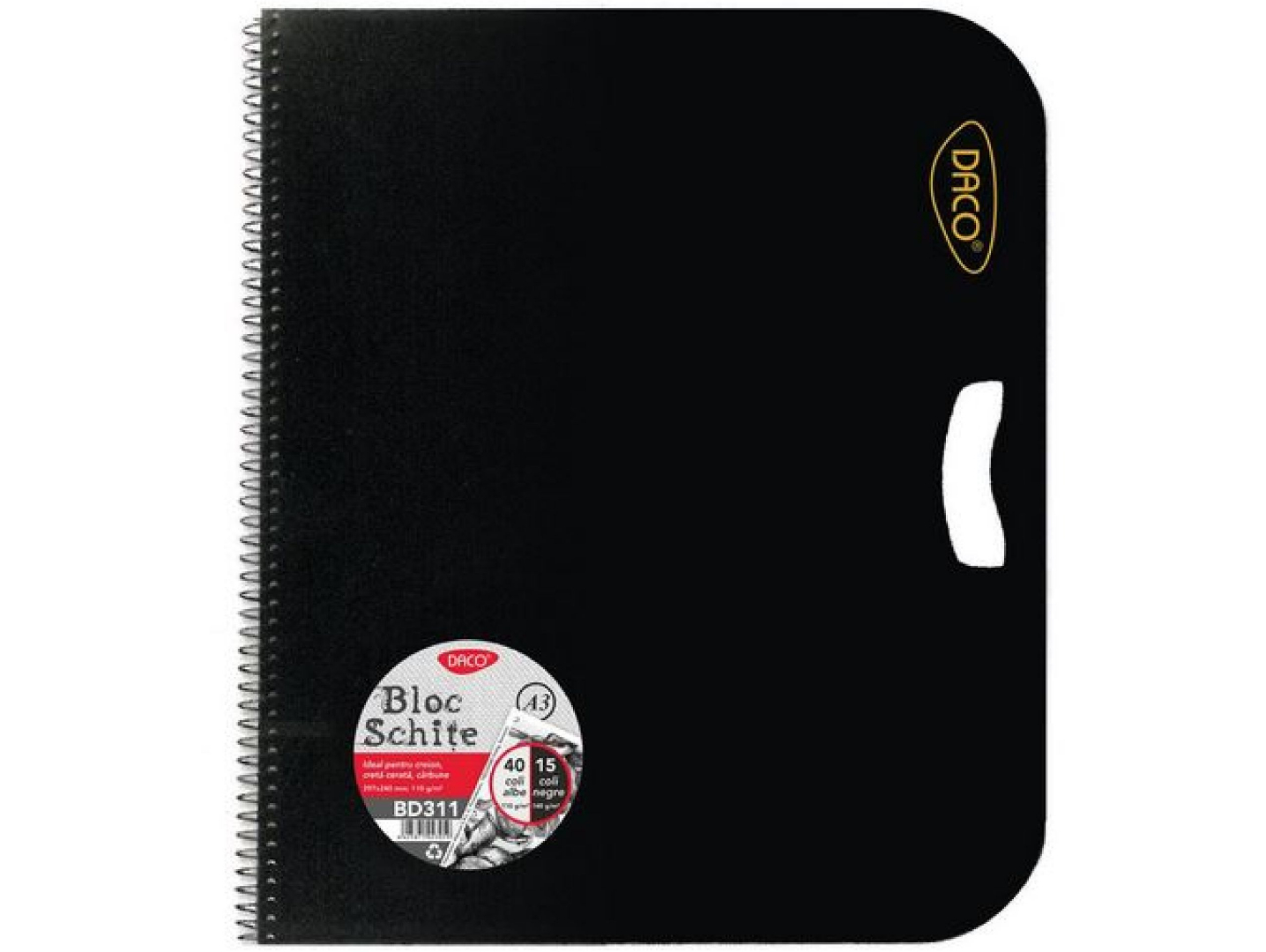 Blocul de schițe DACO A3 cu file mixte este un instrument versatil și practic, conceput pentru artiști, elevi și pasionați de desen care doresc libertate creativă și organizare într-un singur bloc. Combinația de file albe și file negre, cu gramaje diferite, îl face ideal pentru studii artistice variate și exerciții de contrast, lumină și volum.
