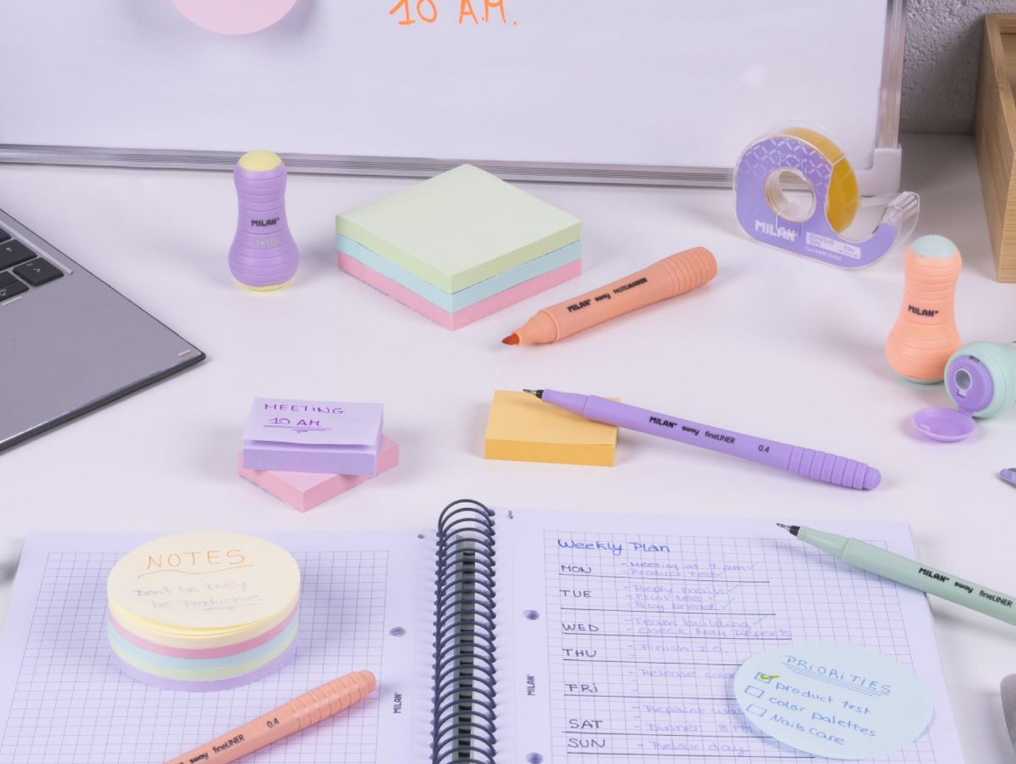 Adaugă un strop de culoare și organizare biroului tău cu blocurile notes adezive MILAN în nuanțe pastelate. Practice și versatile, aceste bilețele autoadezive sunt ideale pentru notițe rapide, marcarea documentelor sau evidențierea mesajelor importante.