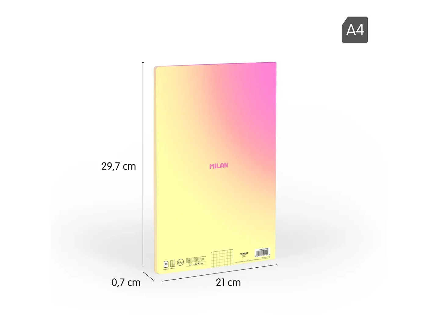 Caiet A4 din colecția Sunset, cu design modern în nuanțe gradient galbene inspirate de apusurile mediteraneene. Ideal pentru școală, birou sau notițe organizate.