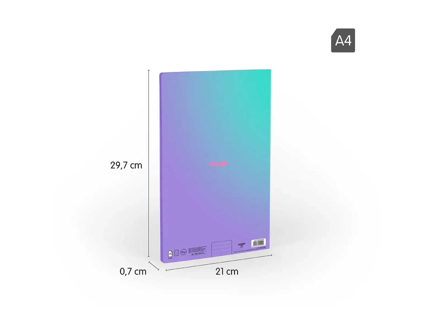 Caietul A4 MILAN Sunset lila este alegerea potrivită pentru școală, birou sau uz personal, combinând hârtia de calitate superioară cu un design modern inspirat de culorile apusului mediteranean. Parte din colecția Sunset, modelul se evidențiază prin nuanțe în degrade și logo MILAN embosat lucios.
