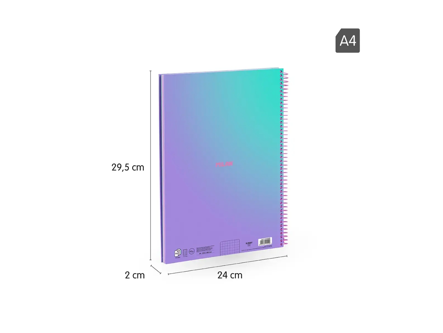 Caiet A4 cu Spirală Metalică MILAN Sunset Lila – 90 File, Pătrățele 5×5 mm, 95 g/mp, Copertă Rigidă