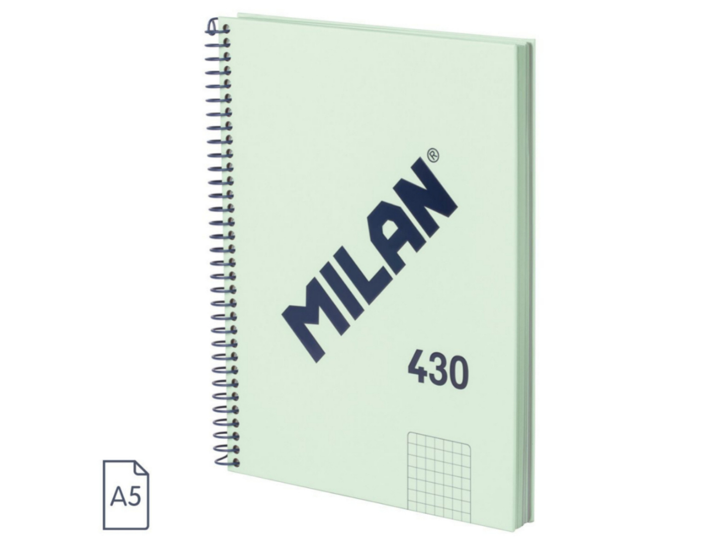 Filele sunt micro-perforate, prevăzute cu tear starter și 2 perforații, permițând desprinderea curată și arhivarea eficientă. Coperta rigidă din carton oferă protecție sporită și este finisată elegant în nuanță verde, cu logo MILAN embosat și lucios. Spirala metalică flexibilă, echipată cu sistem Coil-Lock, permite deschiderea completă a caietului și previne agățarea de haine sau zgârierea suprafețelor.