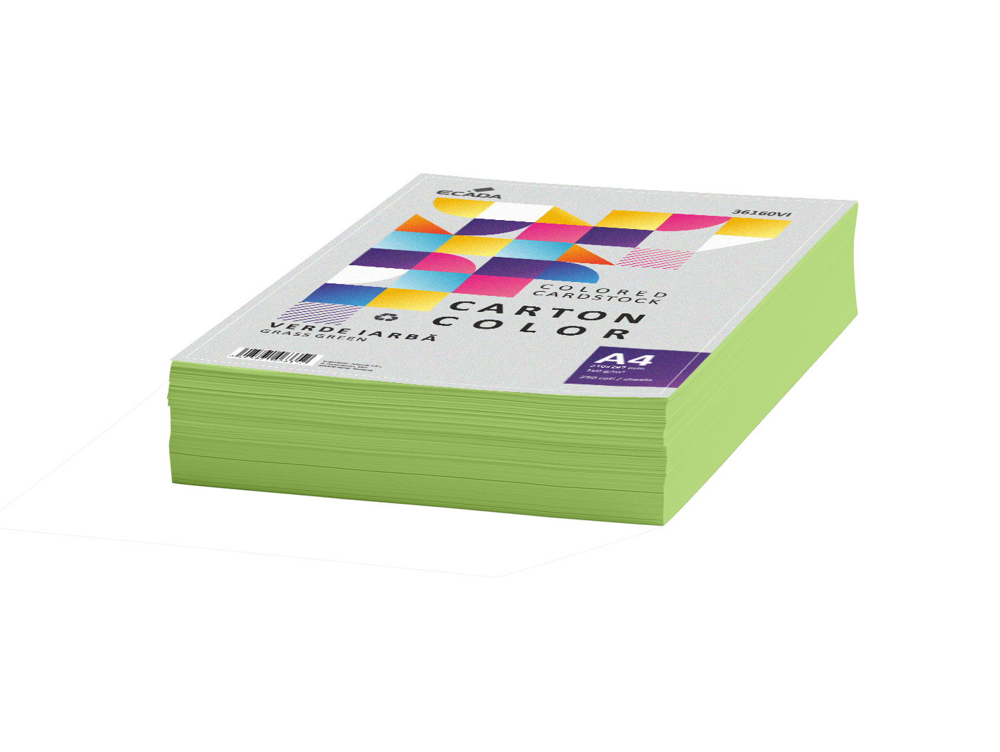Carton color A4 ECADA – Verde iarbă, 160 g/mp, 250 coli/top