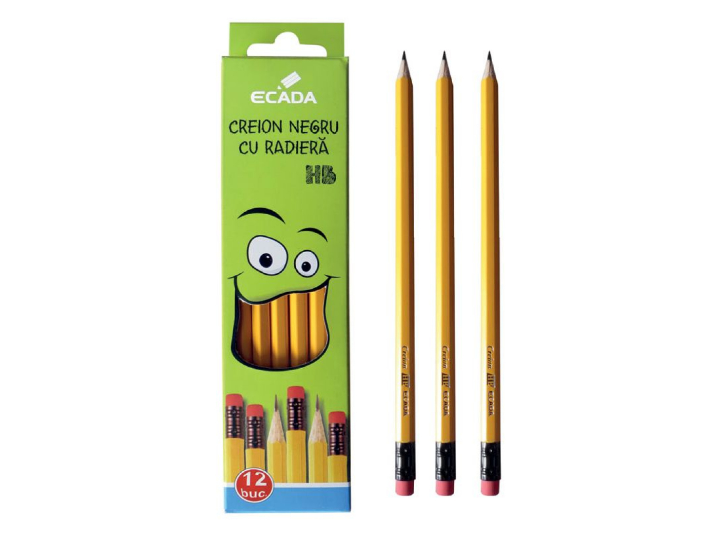 Set Creioane Negre cu Radieră HB ECADA – 12 bucăți | Scriere clară, design ergonomic, versatilitate deplină