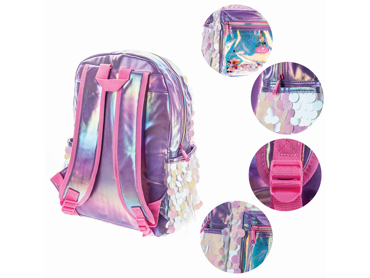 Ghiozdanul ECADA „Mermaid Glow” îmbină funcționalitatea cu un design strălucitor și feminin, fiind perfect pentru elevele care vor să iasă în evidență și să se bucure de confort în fiecare zi de școală.