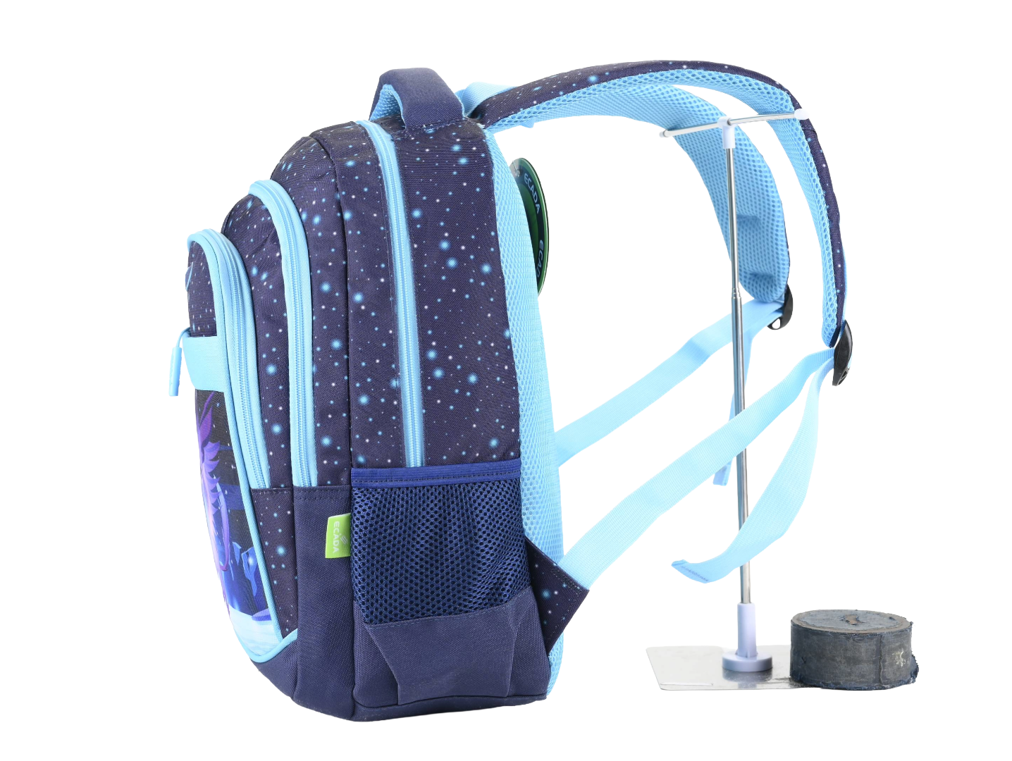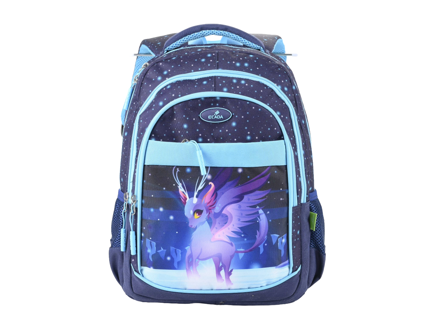 Ghiozdan școlar ECADA 614009 41 cm – albastru deschis/albastru închis, ghiozdan școlari cu 4 compartimente, poliester rezistent