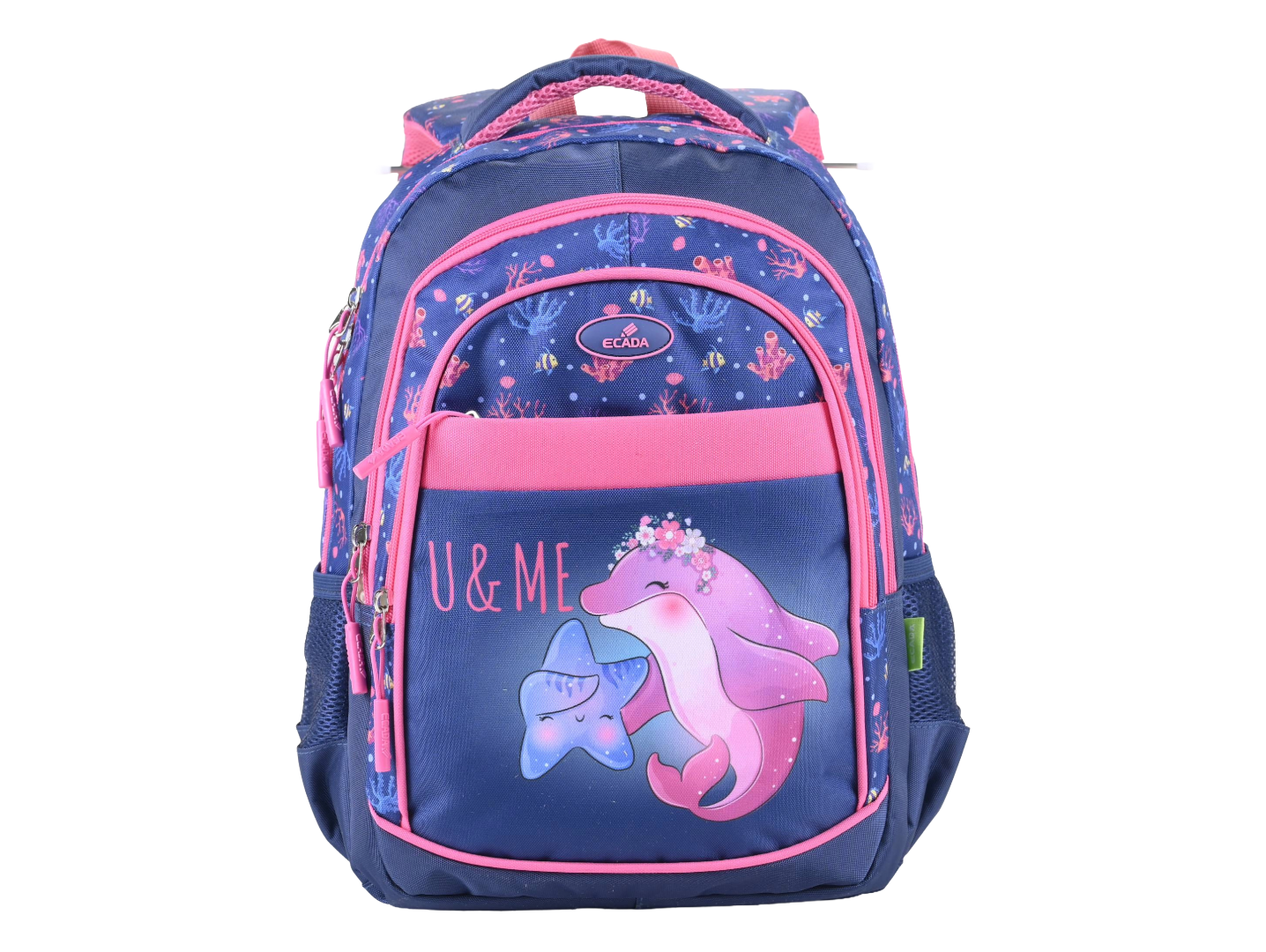 Ghiozdan școlar ECADA 614010 41 cm – albastru închis/roz, ghiozdan școlari cu 4 compartimente, poliester rezistent