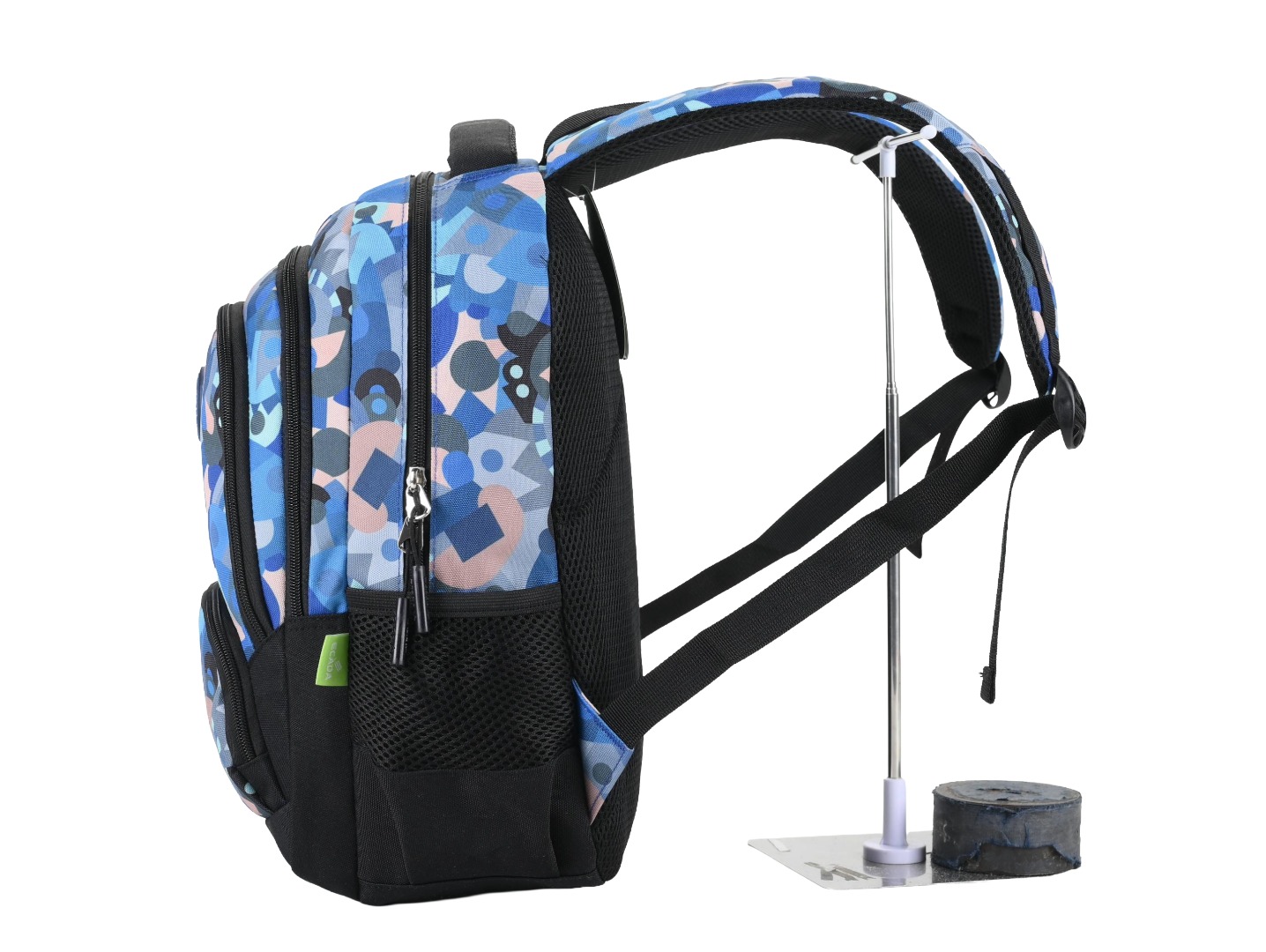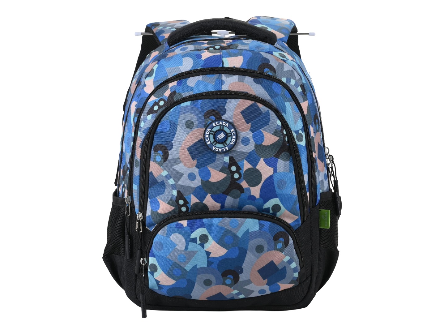 Ghiozdanul ECADA de 41 cm este alegerea ideală pentru elevi, oferind un echilibru perfect între design modern, spațiu de depozitare și confort în utilizare. Modelul cu imprimeu în nuanțe de albastru este atractiv și potrivit pentru școală sau activitățile zilnice.