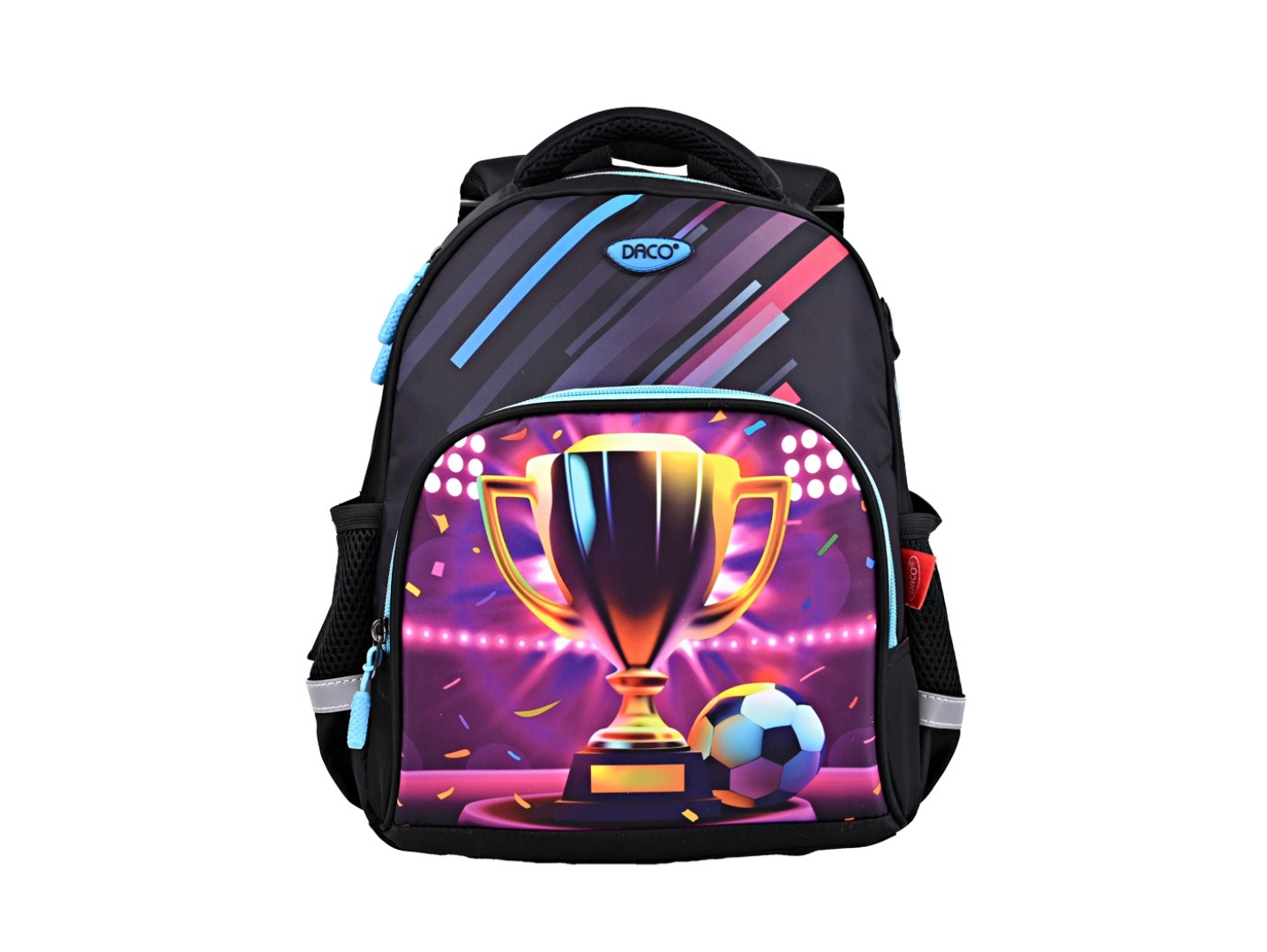 Ghiozdanul DACO „Cupă” îmbină funcționalitatea cu un design sportiv și motivațional, fiind partenerul ideal pentru micii campioni, în fiecare zi.