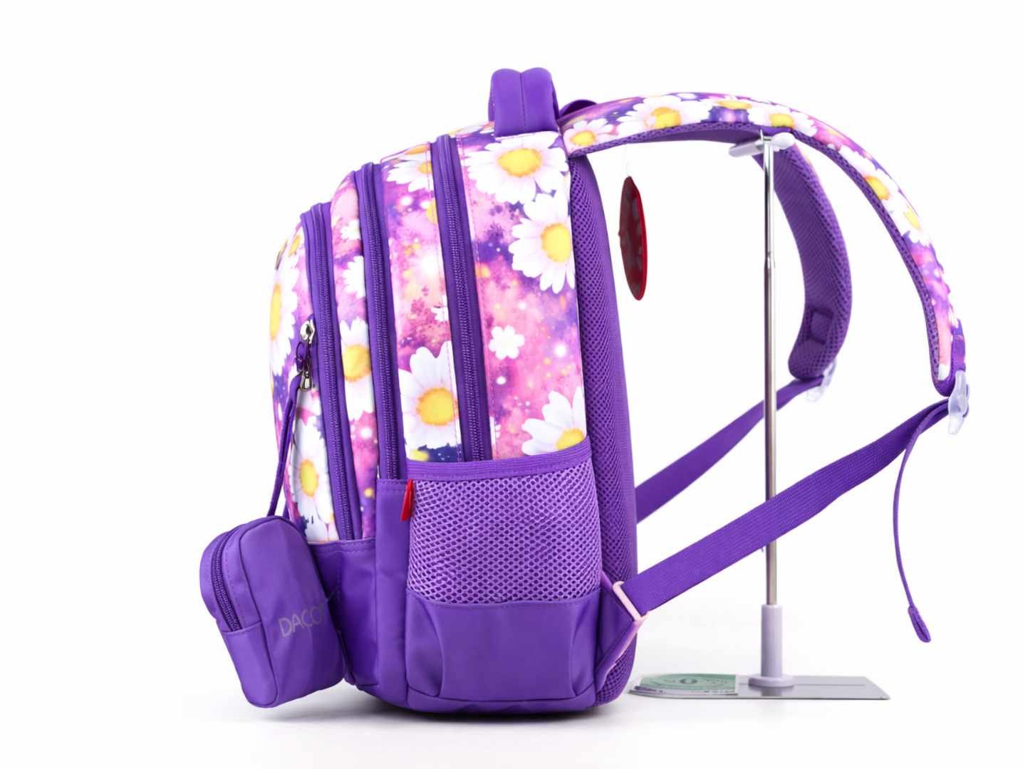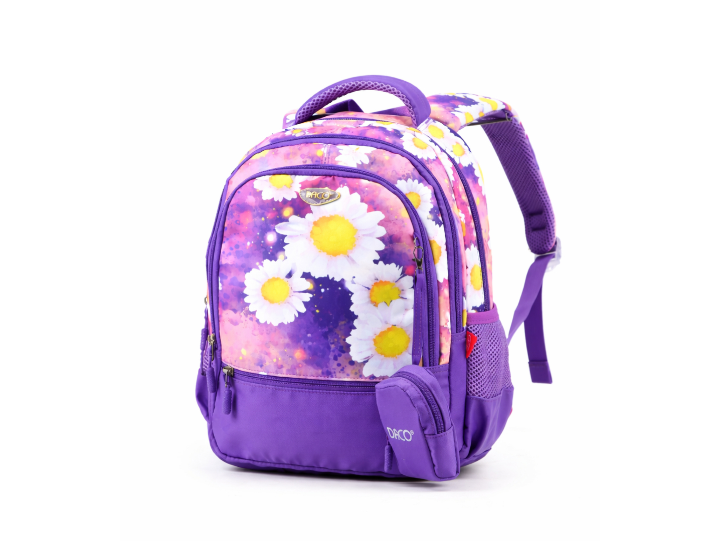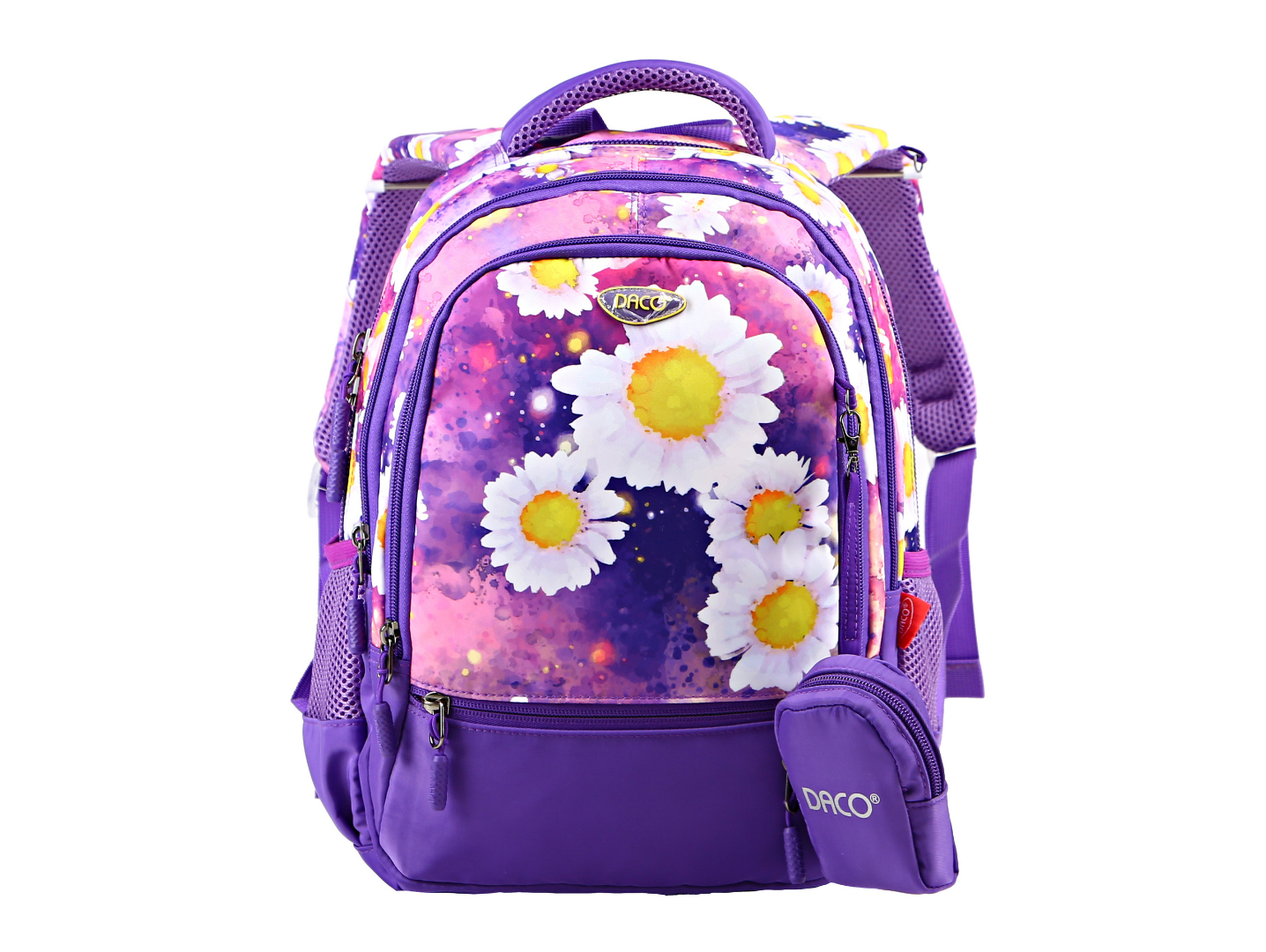 Alegerea unui ghiozdan potrivit este importantă pentru confortul și sănătatea copilului. Ghiozdanul școlar DACO – model Flowers îmbină funcționalitatea cu un design modern și delicat, fiind potrivit atât pentru școală, cât și pentru activitățile din timpul liber.