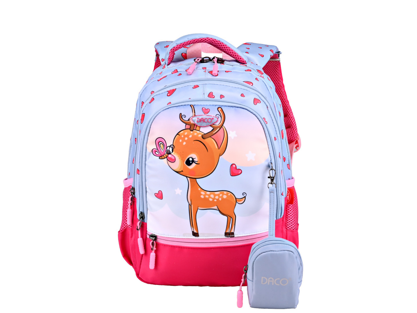 Ghiozdan școlar DACO – model Căprioară, albastru deschis & roz