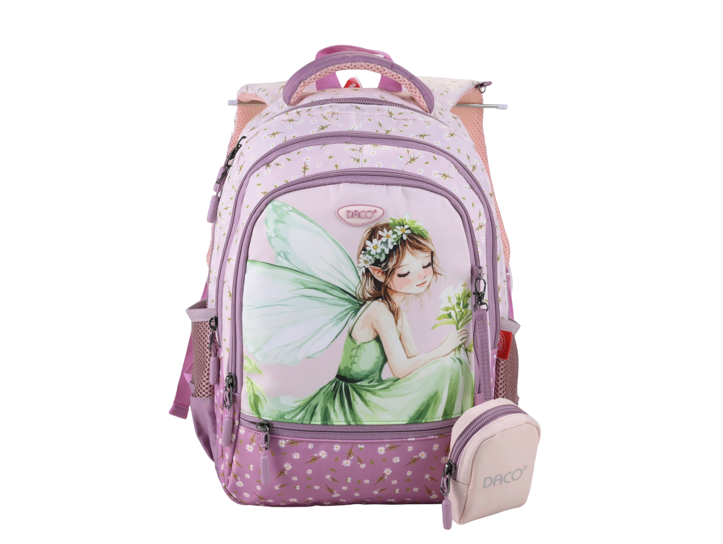 Ghiozdan școlar DACO GH3020 38 cm – roz, ghiozdan școlari cu 4 compartimente, poliester rezistent