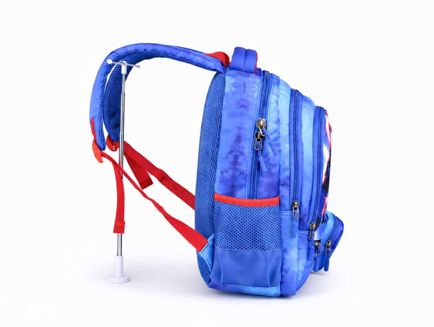 Designul în culoare albastru închis, cu tematică Heroes, completează aspectul practic al ghiozdanului și îl face ușor de purtat zi de zi.