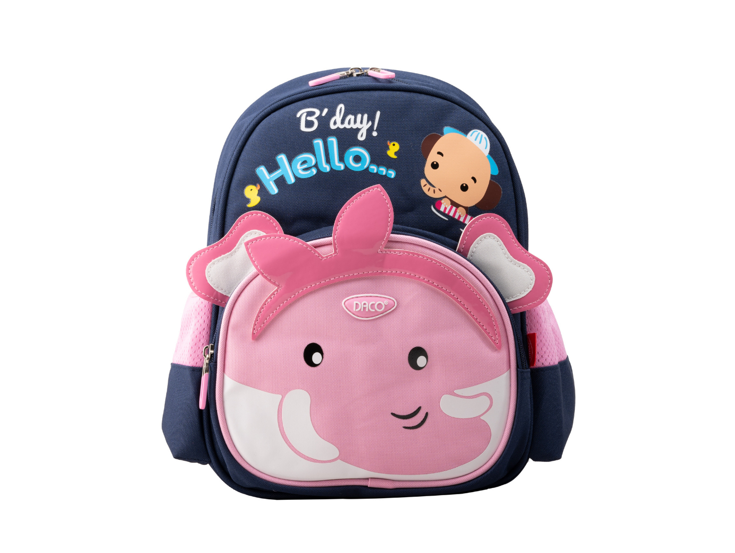Ghiozdanul DACO „Hello” este alegerea perfectă pentru copiii de grădiniță, fiind conceput special pentru a oferi confort, siguranță și un design adorabil. Decorat cu un personaj simpatic în formă de animăluț, în nuanțe plăcute de roz și albastru închis, acest ghiozdan atrage imediat atenția celor mici și îi încurajează să-l poarte cu drag.