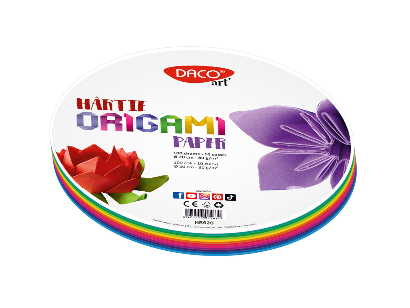 Hârtia origami DACO este special concepută pentru plierea formelor origami și pentru diverse activități creative și educative. Setul conține 100 de coli în 10 culori diferite, ideale pentru realizarea figurinelor origami, decorațiunilor și proiectelor creative.