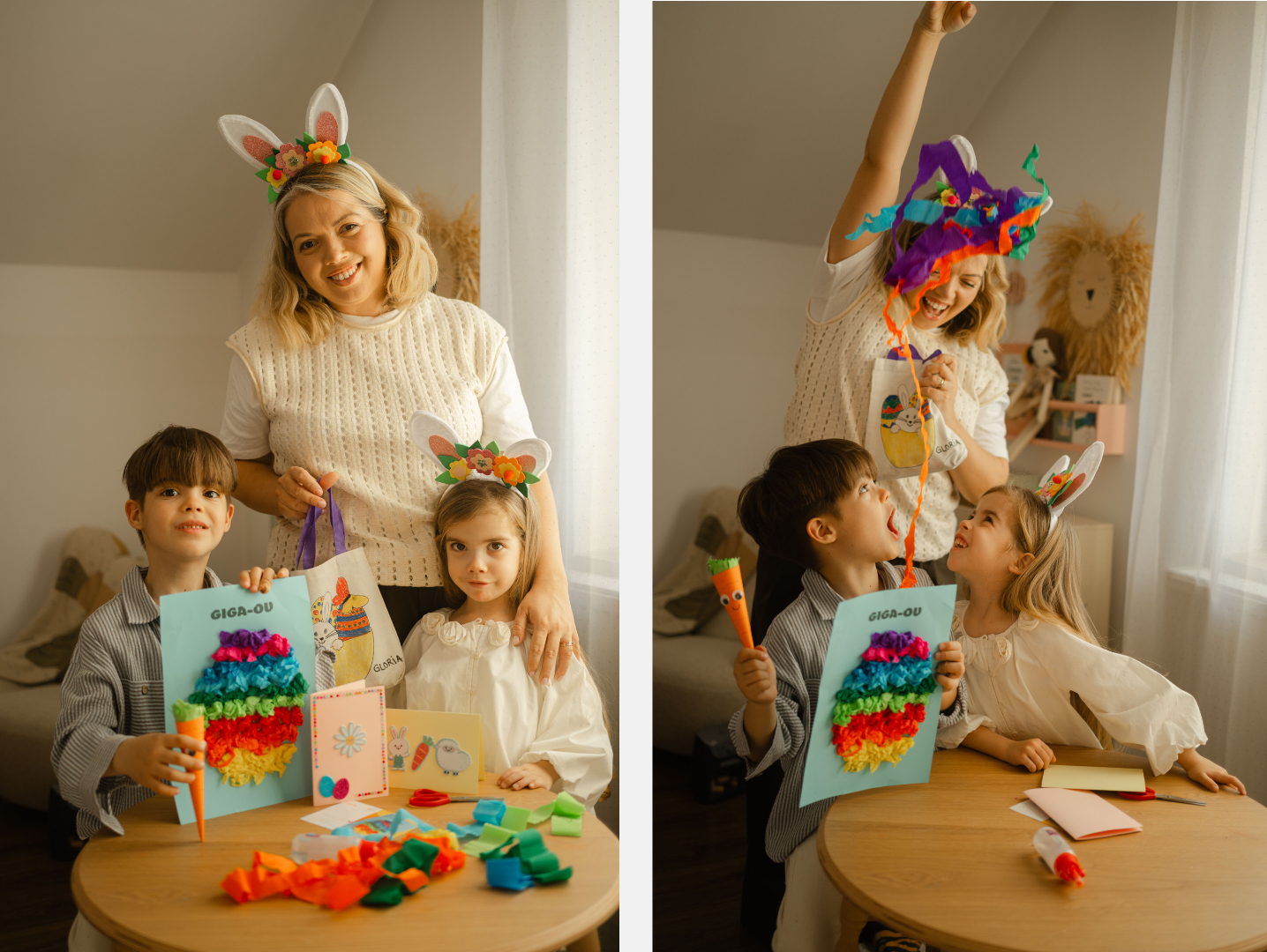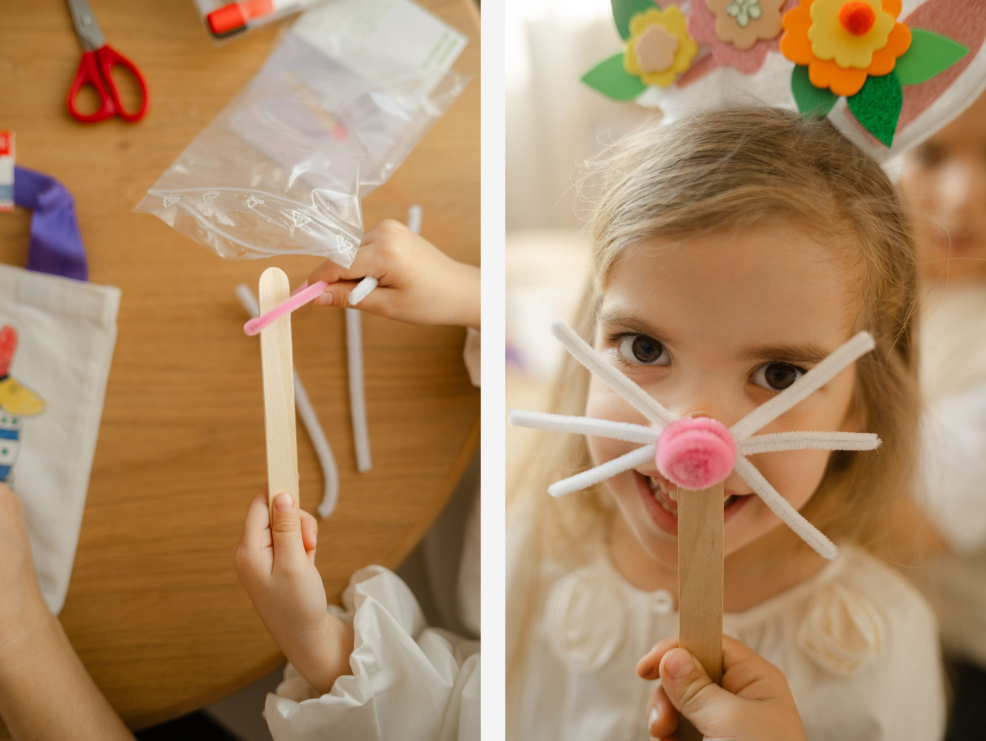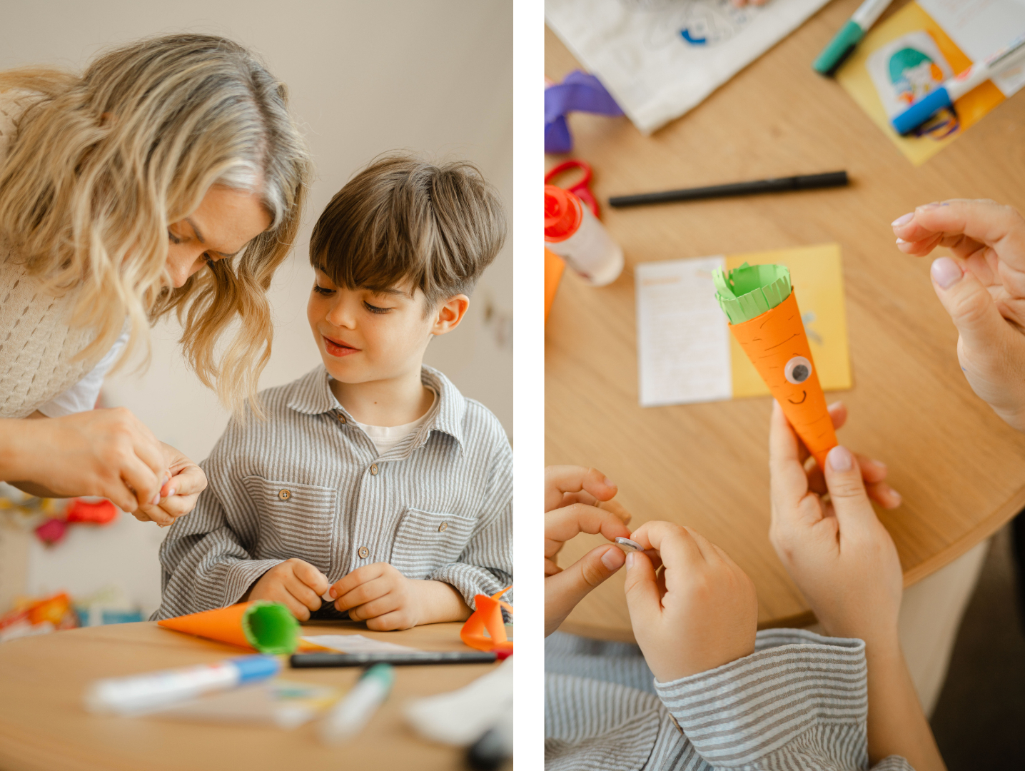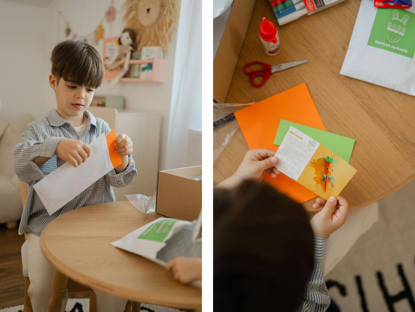 De la realizarea unui morcov simpatic și a unor mustăți haioase de iepuraș, până la decorarea ouălor, confecționarea unei cordeluțe sau crearea unor felicitări, fiecare proiect este o mică aventură creativă.