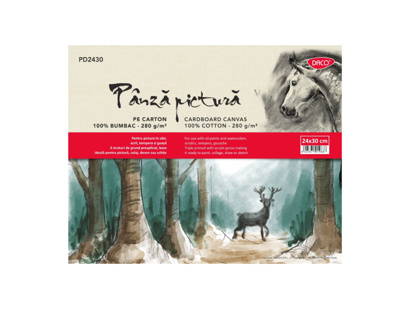 Descoperă libertatea de a crea cu o pânză de pictură care pune în valoare fiecare tușă! Realizată din 100% bumbac, pânza DACO este ideală pentru artiști de toate nivelurile și este compatibilă cu o gamă variată de culori: ulei, acrilic, acuarelă, guașă sau tempera.