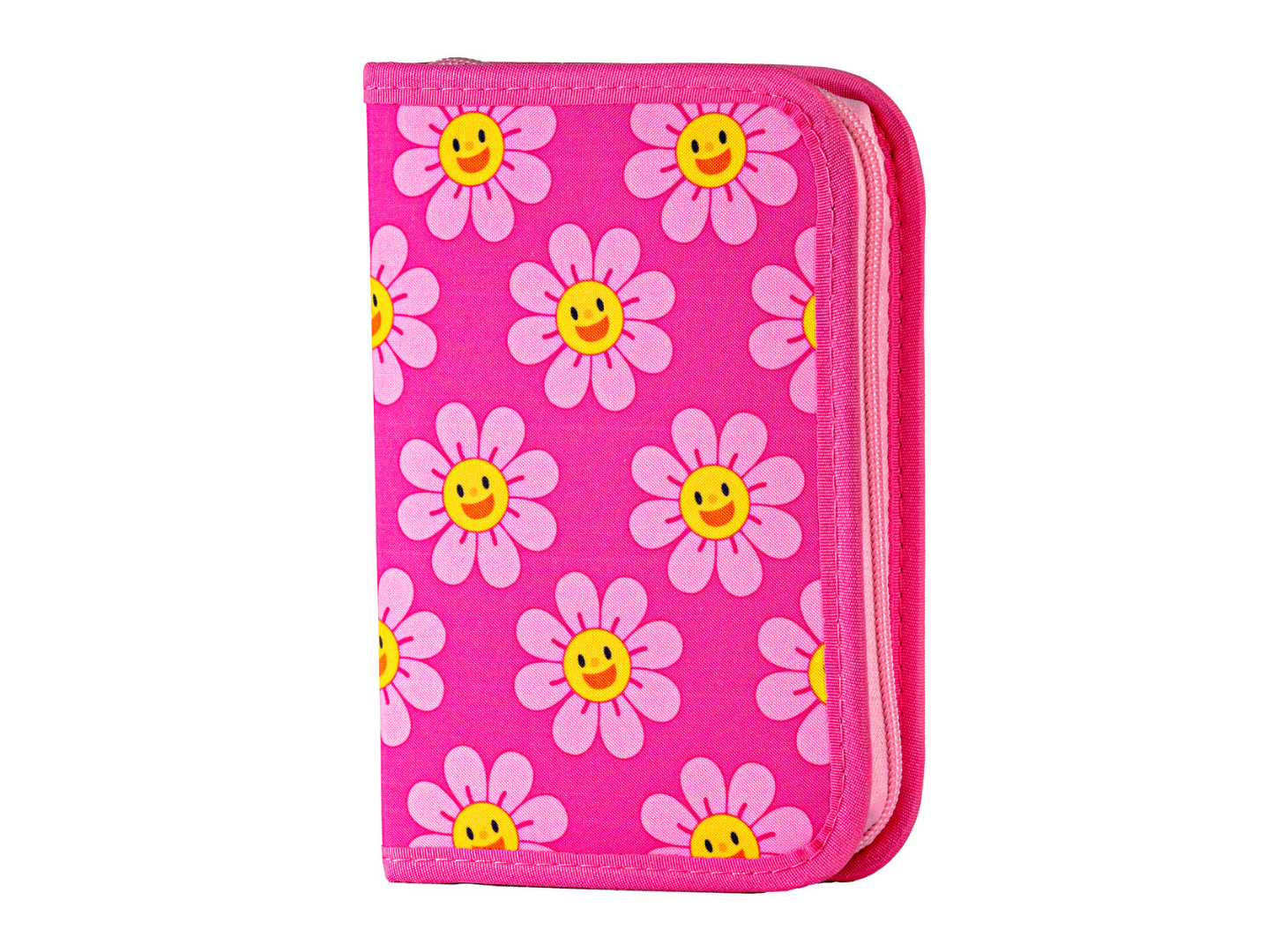 Penar școlar echipat DACO – 1 fermoar, 2 extensii, model flori zâmbitoare