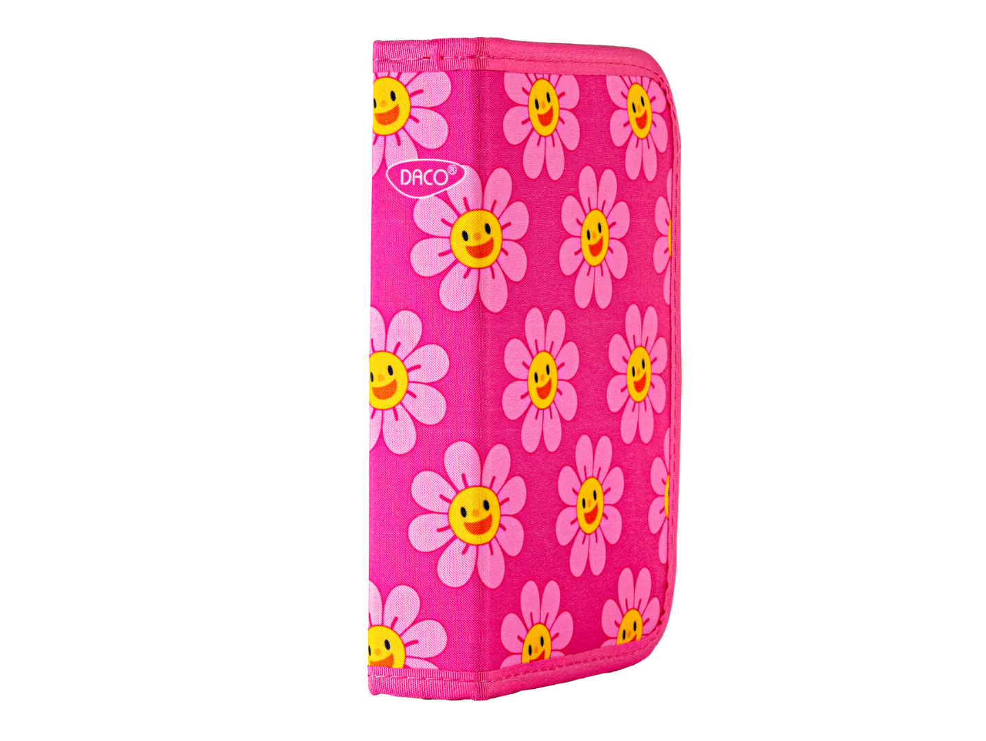 Adaugă un plus de veselie și culoare zilelor de școală cu penarul DACO pentru fete, decorat cu flori roz zâmbitoare, într-un design jucăuș și atractiv. Ideal pentru fetițele care iubesc culorile vii și modelele simpatice, acest penar este atât practic, cât și plin de personalitate.