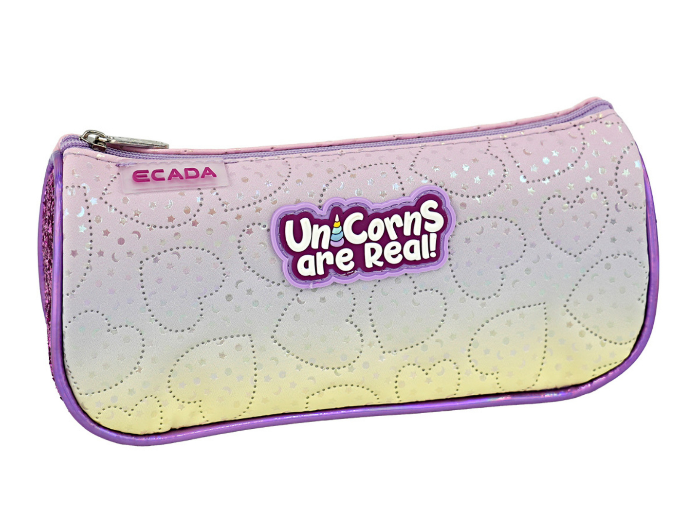 Penarul școlar ECADA Unicorns are Real este un accesoriu practic și atrăgător, creat special pentru copiii care îndrăgesc designurile delicate, culorile pastel și tematica cu unicorni. Designul vesel, cu inimioare stilizate și mesaj decorativ, adaugă un plus de farmec și personalitate ghiozdanului.