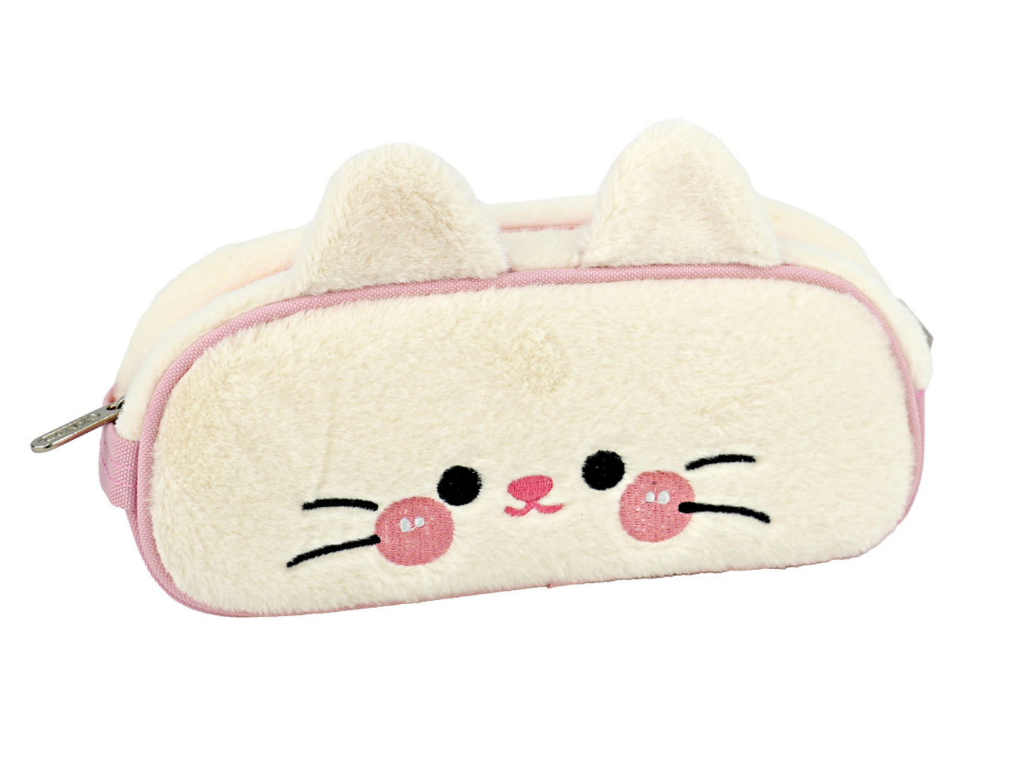 Realizat din material textil moale, cu aspect pufos, penarul este plăcut la atingere și potrivit pentru utilizare zilnică. Forma tip borsetă și compartimentul principal cu fermoar permit depozitarea organizată a pixurilor, creioanelor, markerelor sau a altor rechizite esențiale. Combinația de roz deschis și alb oferă un aspect delicat și atractiv.