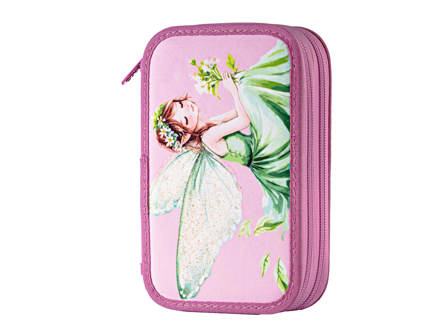 Penarul școlar dublu echipat Zâna magică este alegerea ideală pentru fete care își doresc un accesoriu practic și elegant pentru organizarea rechizitelor. Cu un design delicat în nuanțe de roz pastel, decorat cu margarete și ilustrație cu zână, acest penar îmbină utilitatea cu un aspect atractiv.