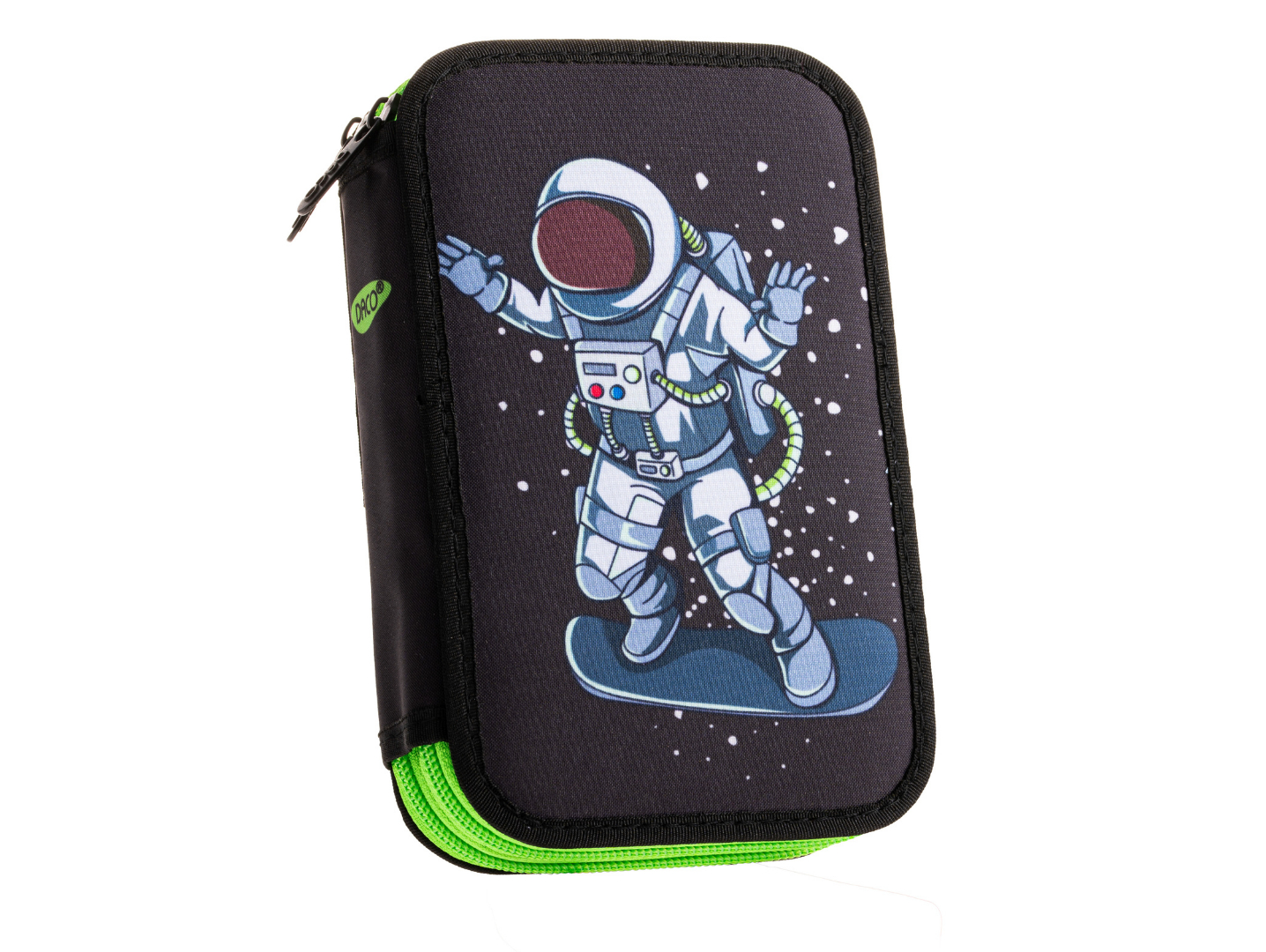 Penarul de la DACO este un accesoriu frumos și practic, conceput pentru a vă ajuta să vă păstrați stiloul, creioanele, markerele și alte obiecte de papetărie organizate. Este prevăzut cu două compartimente principale, fiecare cu propriul său fermoar, oferind o separare eficientă a conținutului.