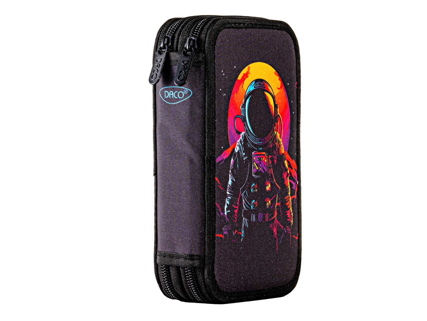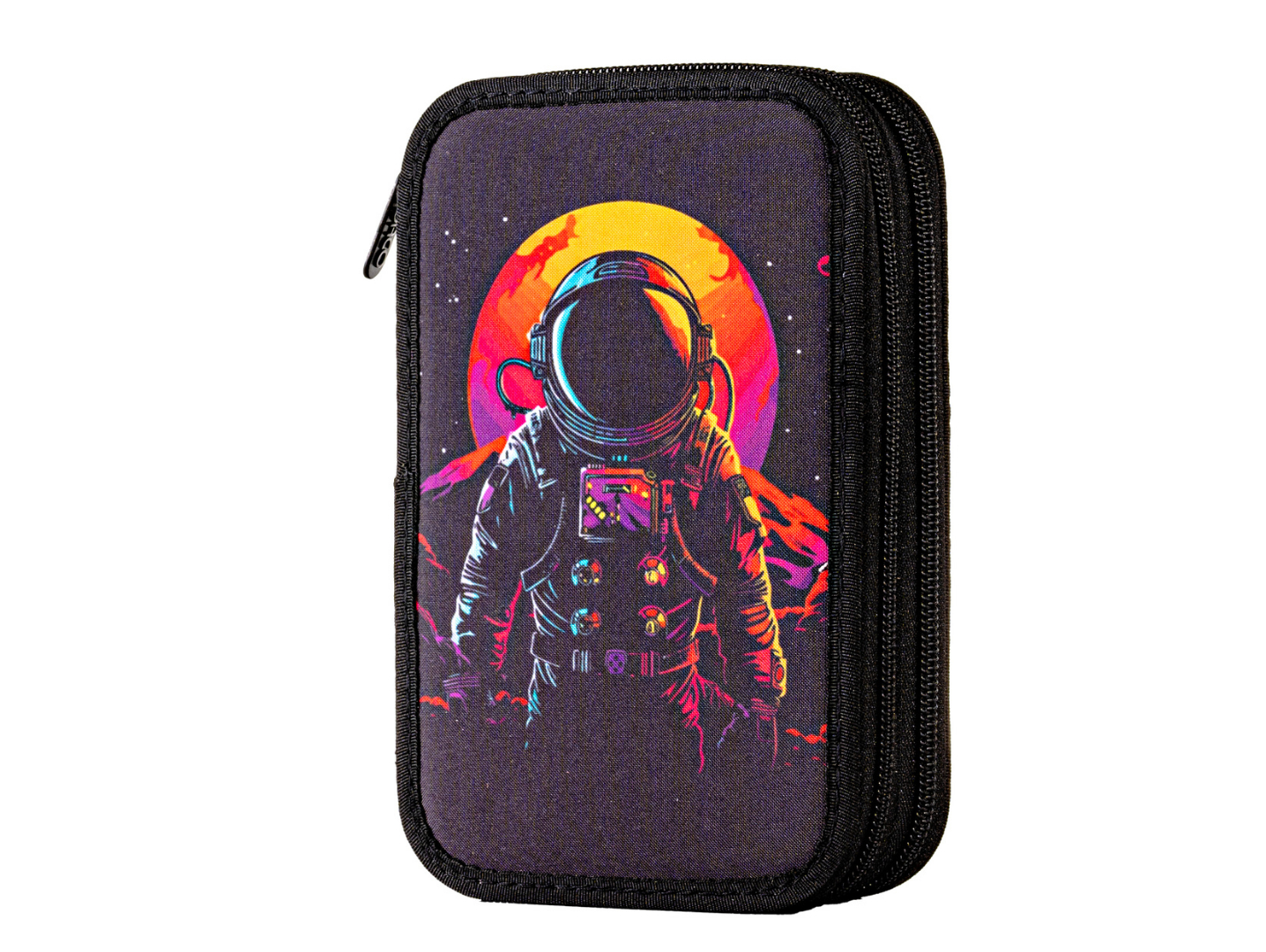 Penarul școlar dublu Astronaut este alegerea ideală pentru copiii pasionați de univers, spațiu și aventură. Cu un design spectaculos ce ilustrează un astronaut pe un fundal cosmic în nuanțe vibrante de portocaliu, roșu și mov, acest penar aduce un plus de originalitate și stil în ghiozdanul oricărui elev.