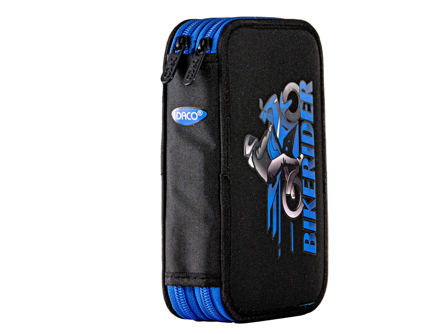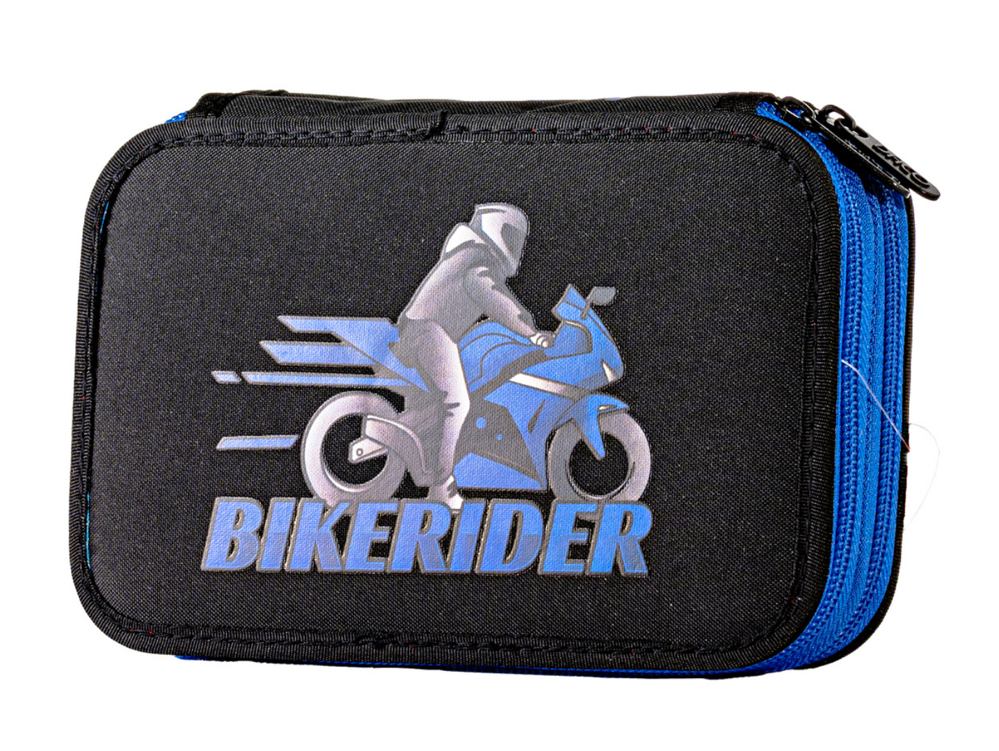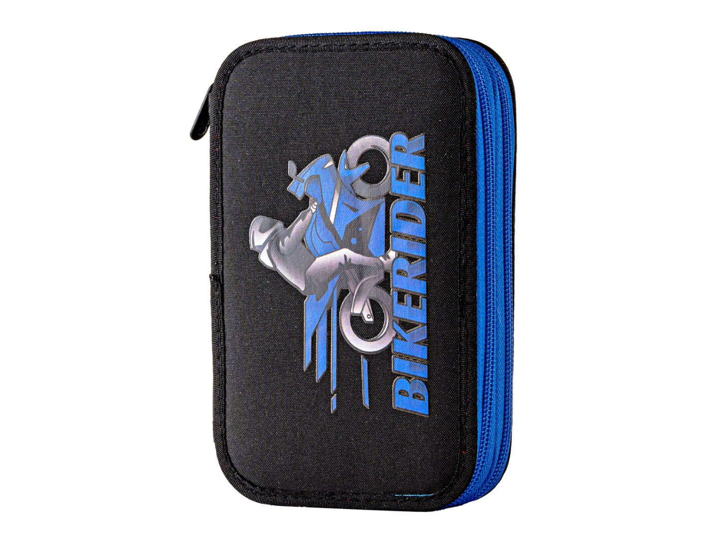 Penarul școlar dublu Motociclist este alegerea ideală pentru băieții pasionați de viteză și adrenalină. Cu un design modern, în nuanțe de negru și albastru, decorat cu motocicletă sport și elemente grafice „biker”, acest penar aduce un plus de stil și personalitate în fiecare zi de școală.