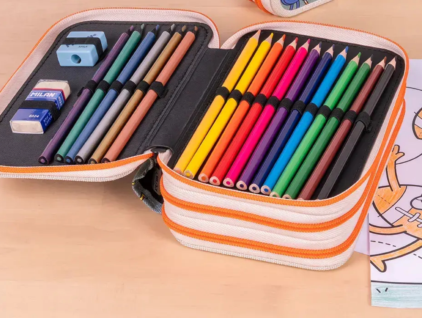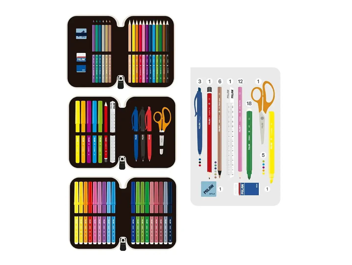 Penar echipat triplu MILAN Sports, în culoare verde, ideal pentru organizarea completă a rechizitelor școlare. Datorită structurii cu 3 compartimente suprapuse (triple-decker), toate instrumentele de scris și desen sunt ușor de păstrat ordonate și accesibile în timpul orelor.