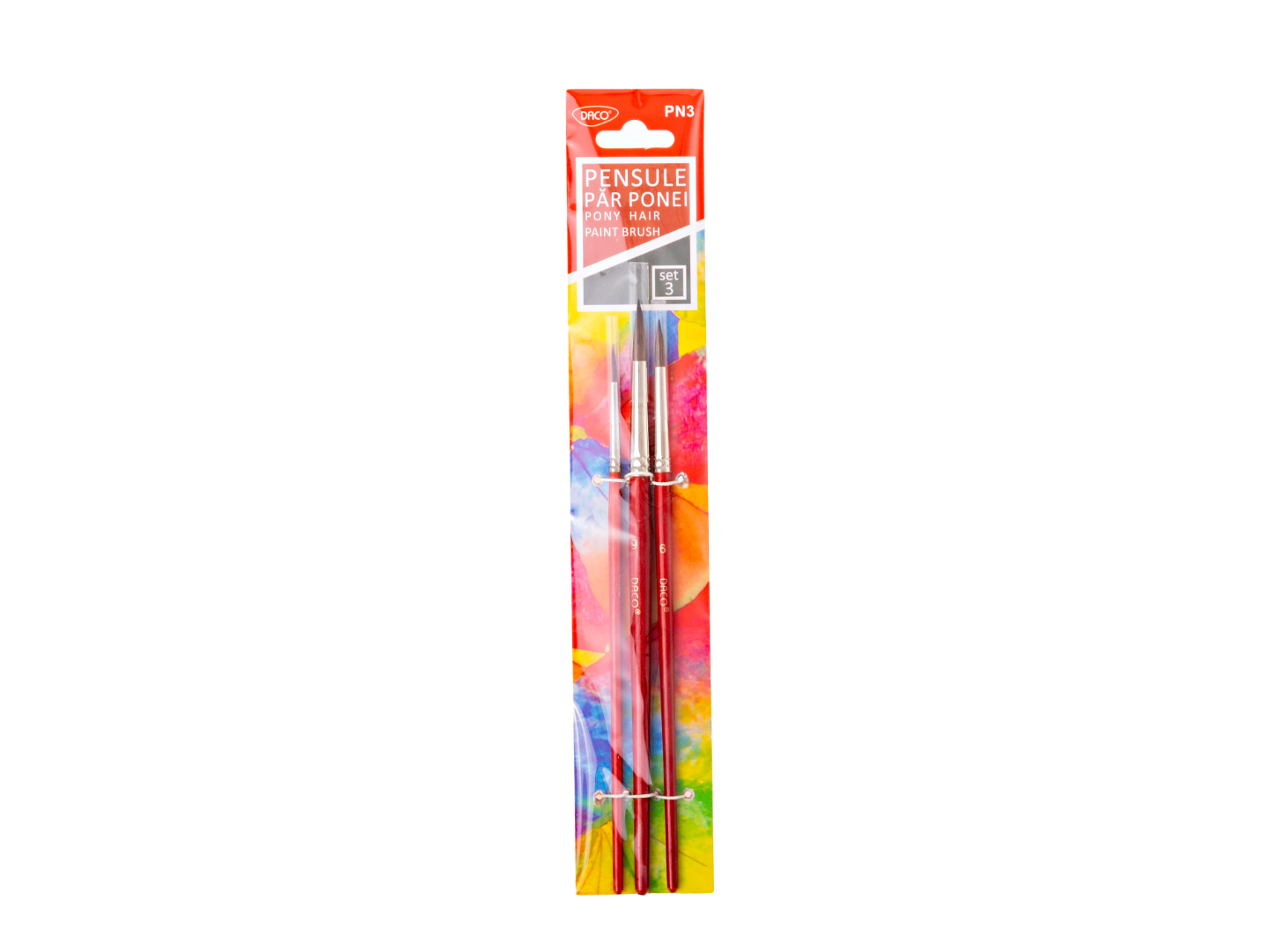 Setul de pensule DACO cu păr de ponei (3 bucăți) oferă control, precizie și versatilitate, fiind potrivit pentru diverse proiecte artistice și niveluri de experiență.