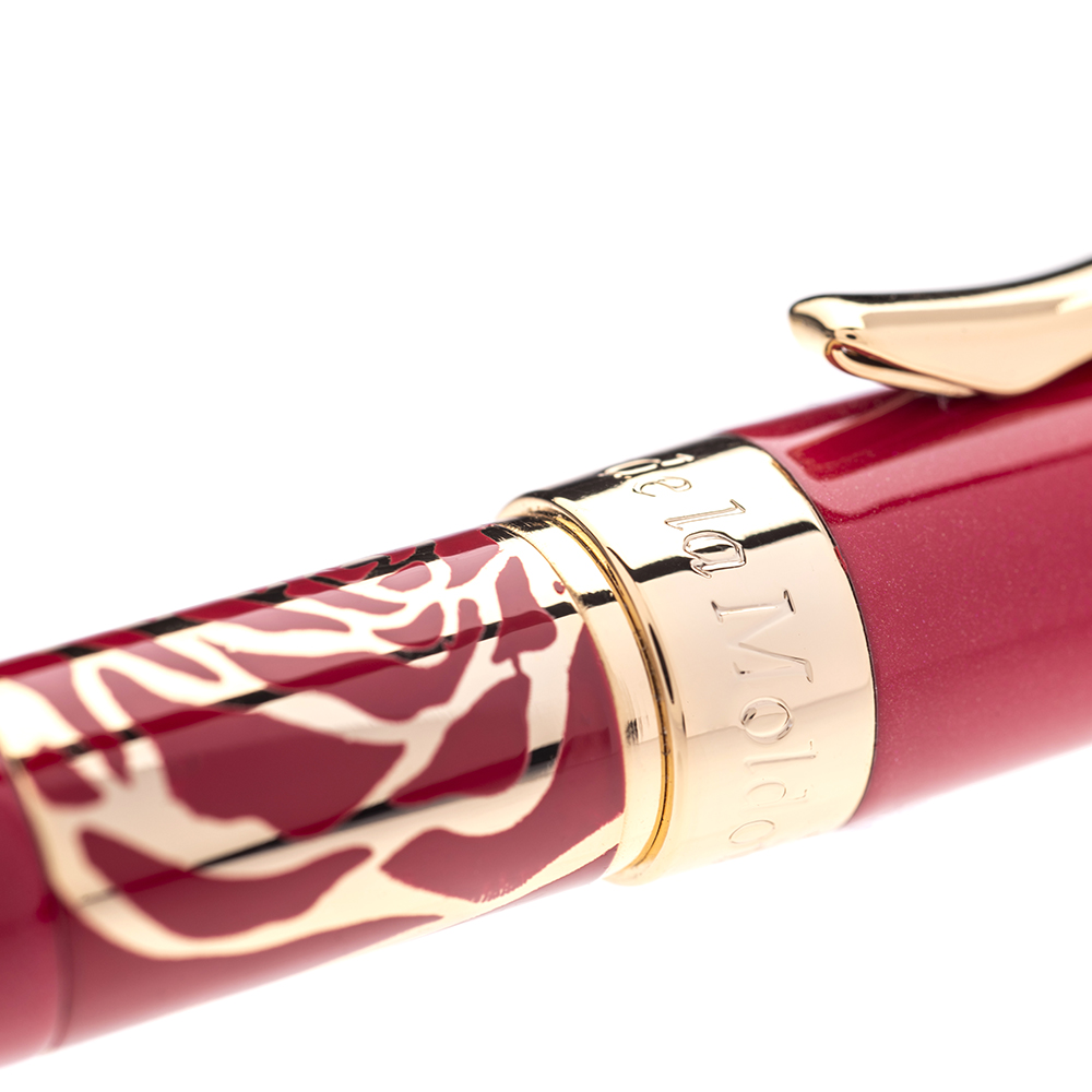 Stilou metalic DACO – model „Trandafir de la Moldova”, roșu cu auriu | Eleganță modernă inspirată din tradiție